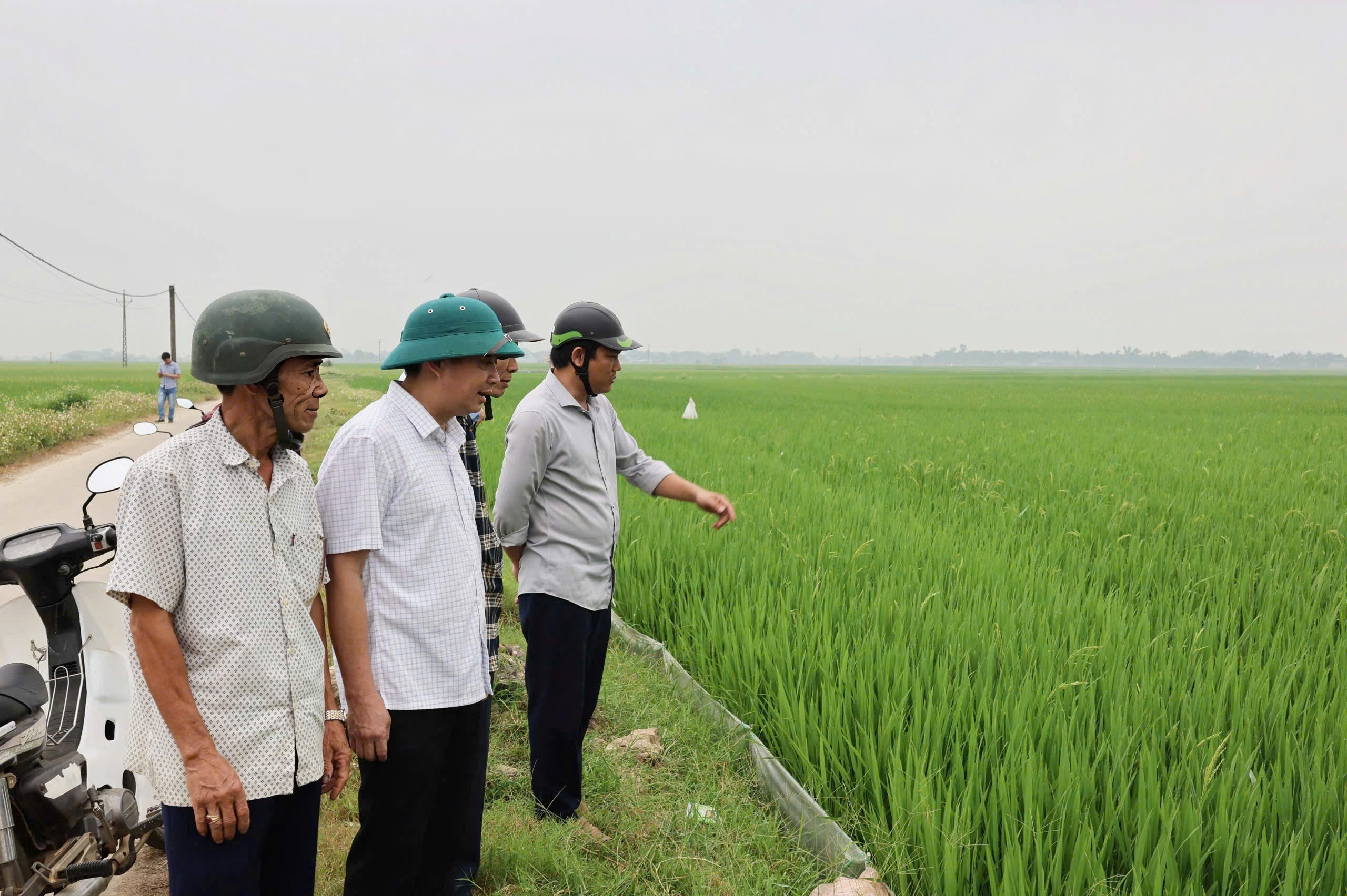 Đồng chí Phó Chủ tịch UBND xã Lê Xuân Tú và Đoàn công tác nhận định, mặc dù cơ bản diện tích lúa đang sinh trưởng, phát triển tốt; Tuy nhiên, nguy cơ phát sinh, bùng phát dịch hại thời điểm cuối vụ vẫn tiềm ẩn, đặc biệt khi thời tiết diễn biến bất lợi.