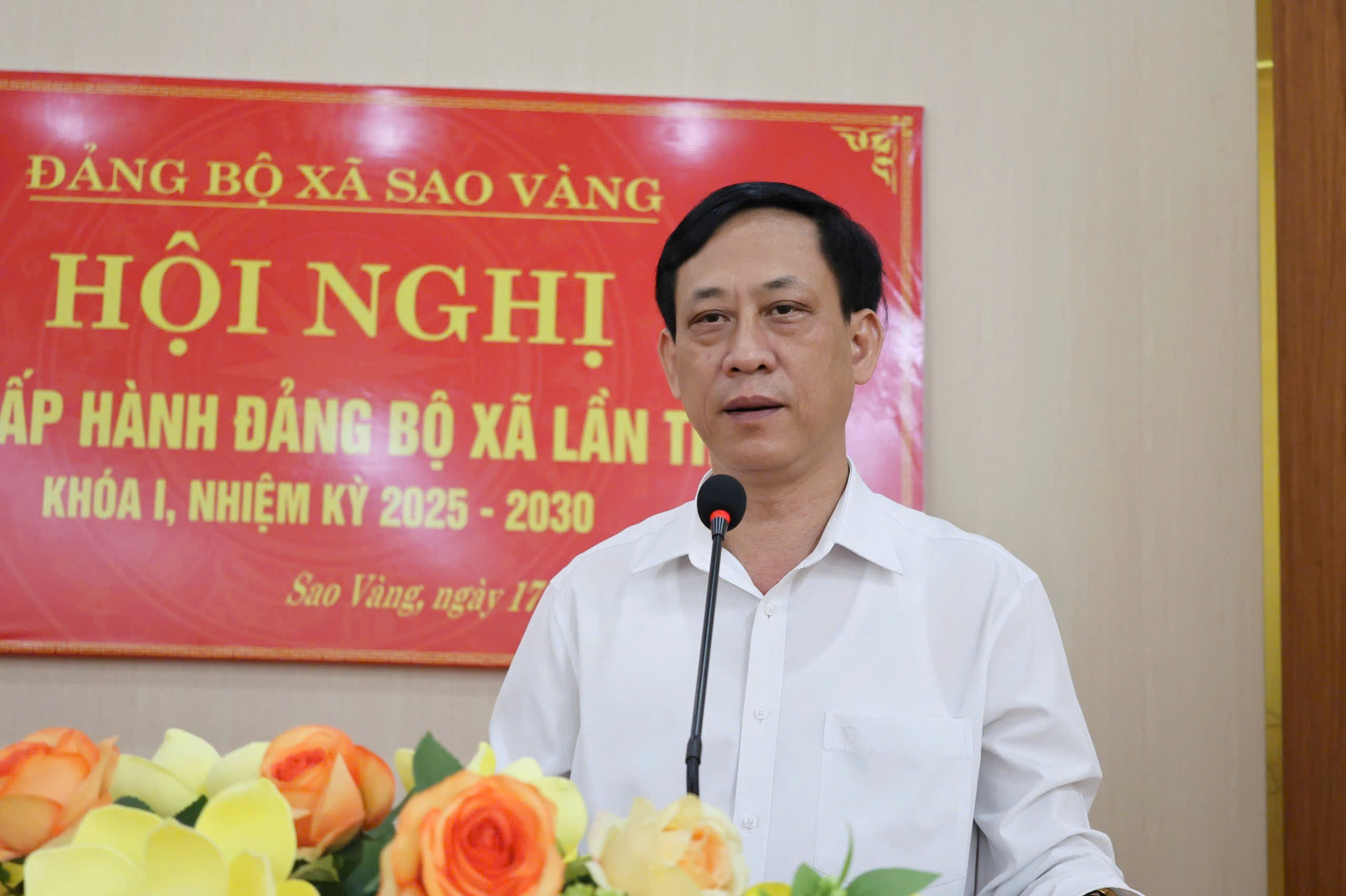 Sáng 17/4/2026, Ban Chấp hành Đảng bộ xã Sao Vàng đã tổ chức hội nghị quán triệt, triển khai Nghị quyết về "Tăng cường sự lãnh đạo của Đảng đối với công tác giải phóng mặt bằng các dự án đầu tư có sử dụng đất trên địa bàn xã giai đoạn 2026 - 2030".