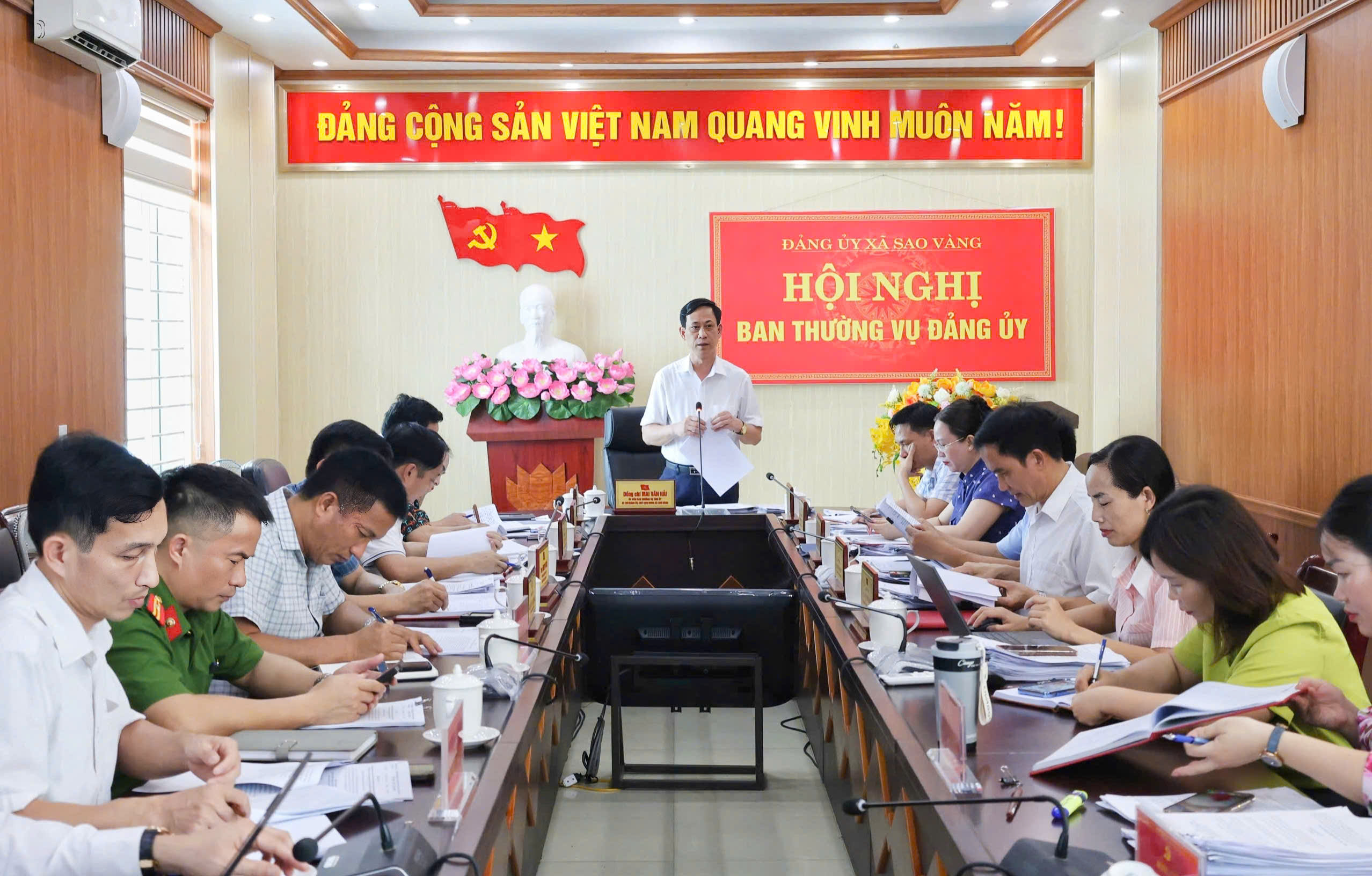 Thực hiện chương trình công tác, chiều 09/4/2026, Ban Thường vụ Đảng ủy xã Sao Vàng tổ chức Hội nghị thảo luận và cho ý kiến một số nội dung thuộc thẩm quyền.