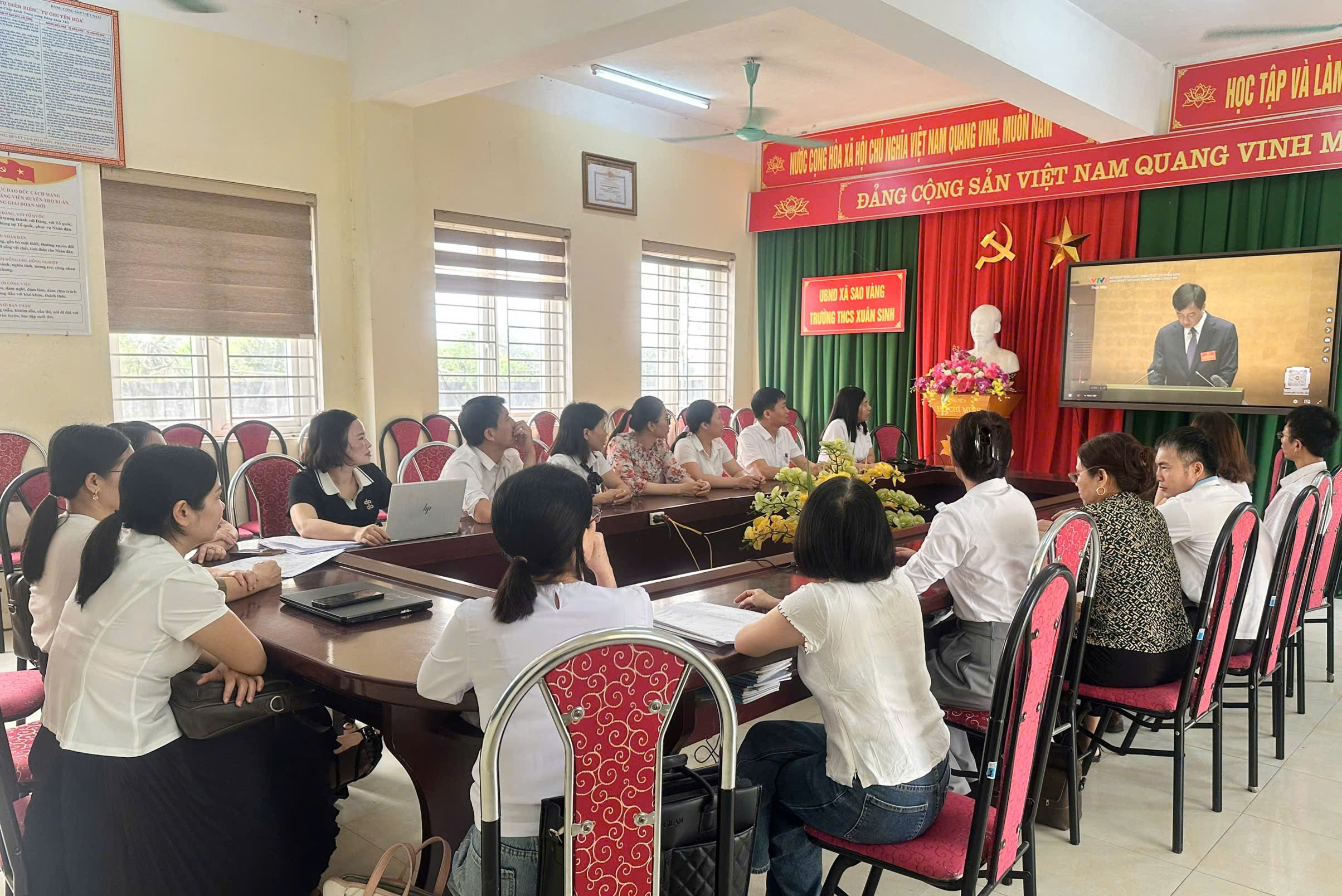 Hội nghị được kết nối đến trên 36 nghìn điểm cầu với trên 2,2 triệu người nghiên cứu, học tập. Đồng chí Phanh Thanh Dũng, Phó Bí thư Thường trực Đảng ủy, chủ trì tại điểm cầu xã Sao Vàng.